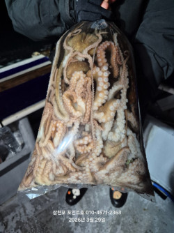 반갑습니다. 삼천포 포인트호 정선장입니다.주말 주간 원도권 돌문어 / 야간 낙지 조황입니다.계속해서 쭉 ~~~ 돌문어 / 낙지 출조합니다.주간은 원도권 돌문어 / 야간은 낙지 출조